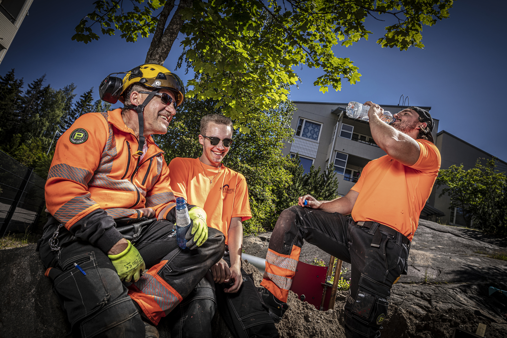 Kesällä helle hellii tai toisaalta tuottaa tukalan olon. Niin kiinteistöhuollossa kuin monella muullakin alalla töitä tehdään säästä huolimatta. Kesäkuumalla on tärkeää pitää itsestään huolta:
